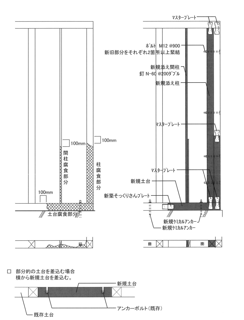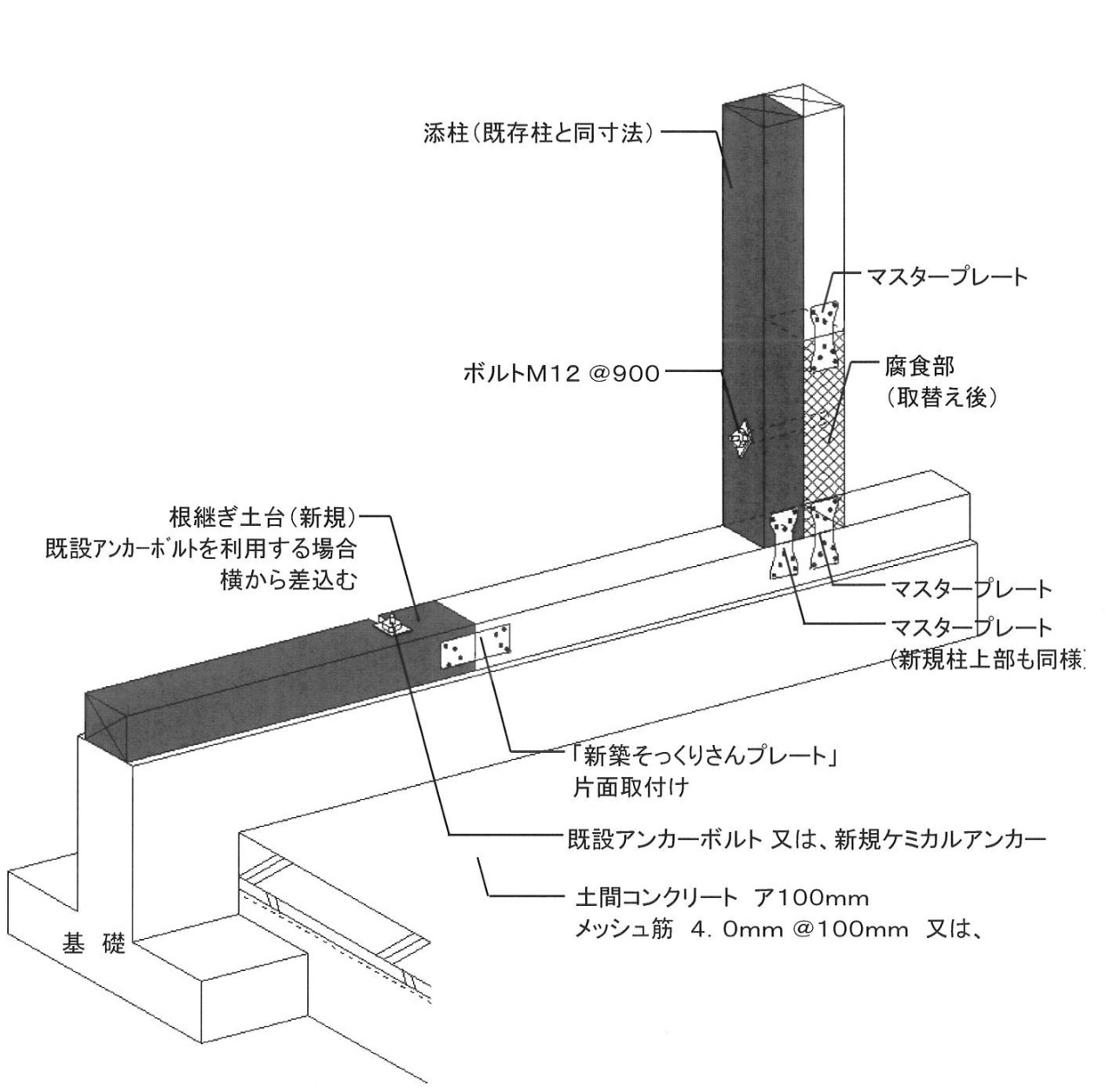 キョーエイ・プライムでは、腐食した土台には新しい土台を接続する工法、