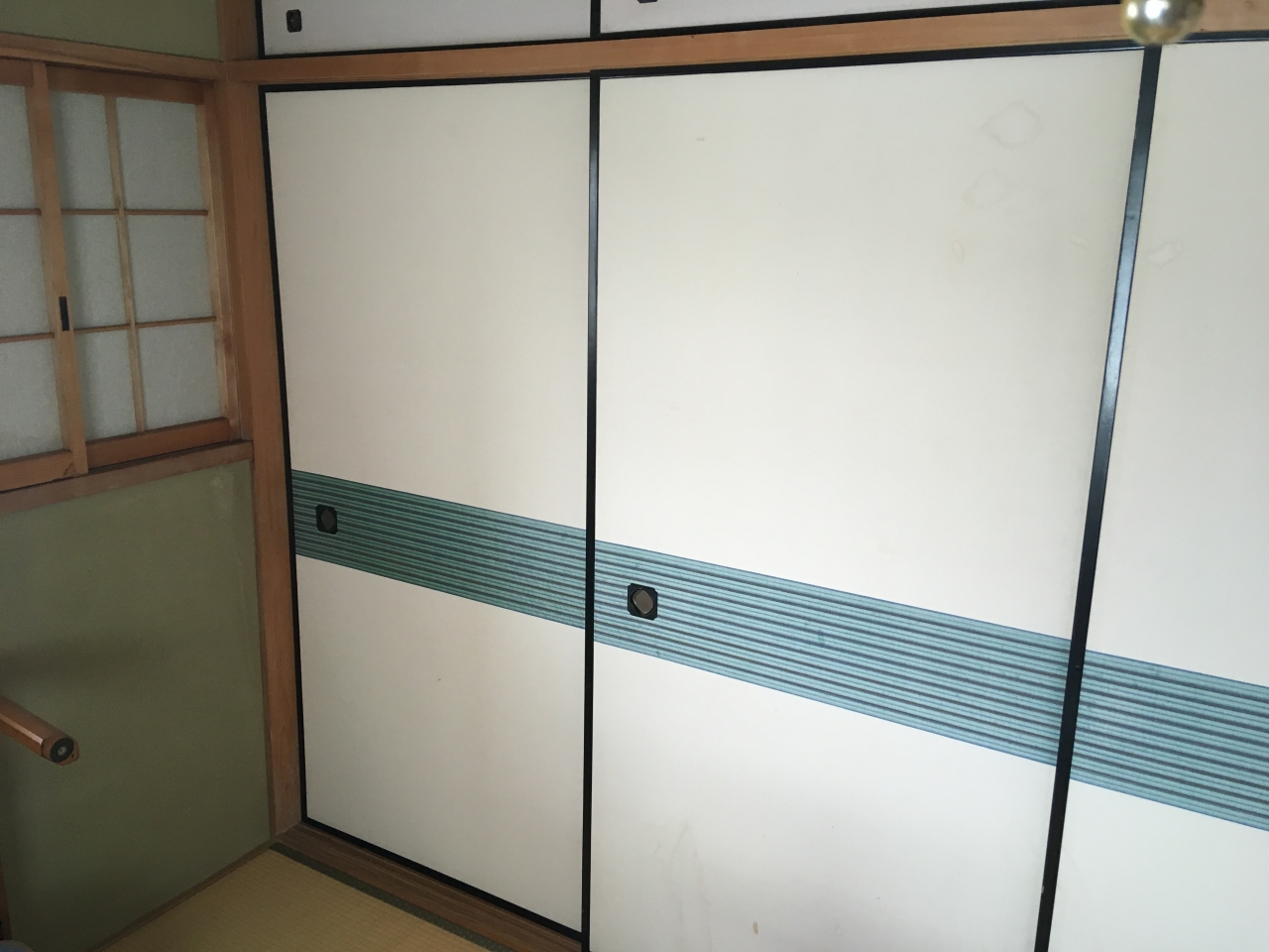 施工前は中央にキレイなブルーのラインが入った襖でした。