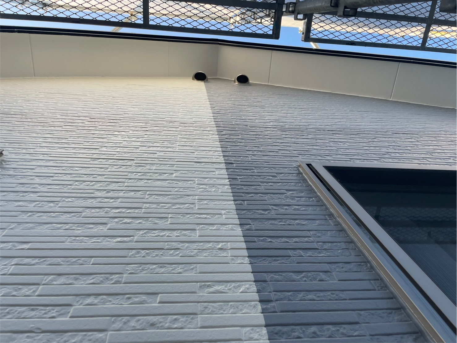 上塗りには、耐候性・低汚染性に優れた【パーフェクトトップ】を2回塗りで施工。しっかりと膜厚を確保し、美しい艶と発色を実現しました。雨風や紫外線にも強く、長期間にわたって美観を保つことができます。